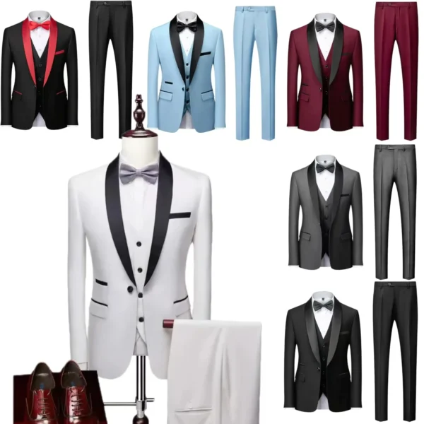 Elegant Men’s Suits Classic Tuxedo Suits for Men 3 Pieces Blazer Vest and Pants Set Shawl Lapel for Wedding Business Prom