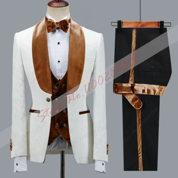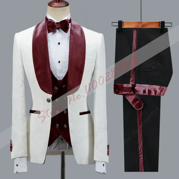 Latest Design Luxury Men Suit Slim fit Groomsmen Groom Wedding Dress Tuxedos Costume Homme Men Clothing 3PCS(Blazer+Pants+Vest)